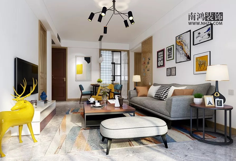 客廳盡量選擇LED射燈,射燈的燈光,不刺眼、分布均勻,且光線都向下投射,完美弱化了天花板的存在。