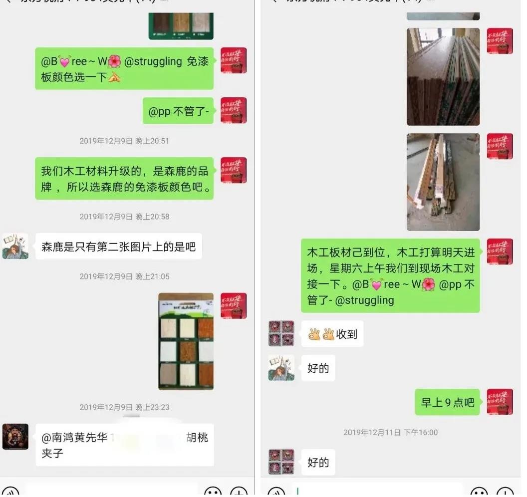 黃經理認為在施工過程中與業主的溝通協商十分重要,除了每日將施工內容發在群里讓業主知曉,也要及時回復業主的疑問,將南鴻的服務品質發揮到極致。